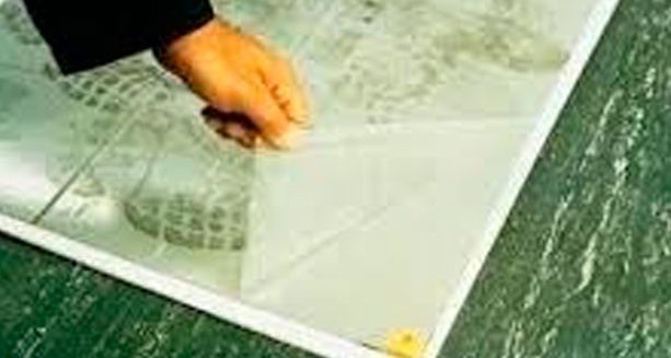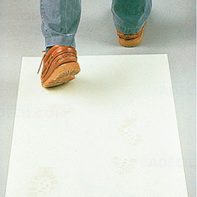 Um bloco de adesivos, que captura a sujeira no contato com as solas de sapato, rodas e outros objetos.