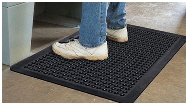 - Tapete construído 100% em borracha moldada com ação antiderrapante;