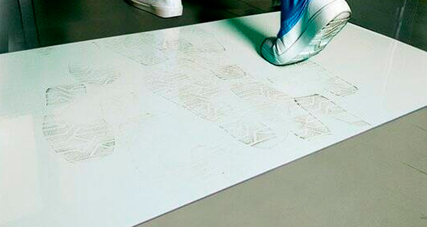 Um bloco de adesivos, que captura a sujeira no contato com as solas de sapato, rodas e outros objetos.