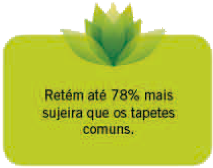 Os tapetes da linha Nobre possuem o exclusivo Sistema de Contenção de Sujeira e Umidade 3M, que remove e esconde partículas, contribuindo significativamente para a redução de custos com limpeza e manutenção dos ambientes internos e externos.